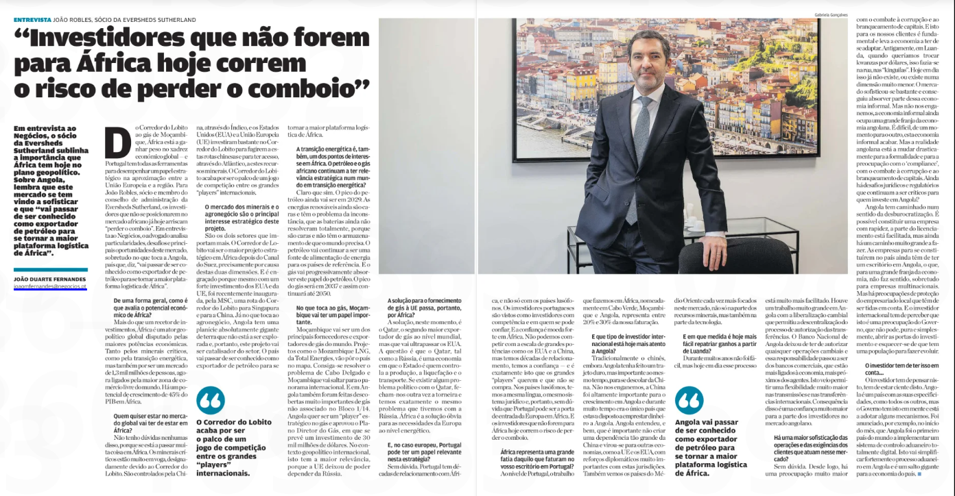 Em entrevista ao Jornal de Negócios, o nosso Sócio, João Robles, sublinha a importância que África tem hoje no plano geopolítico.